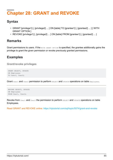 Chapter 28: GRANT and REVOKE