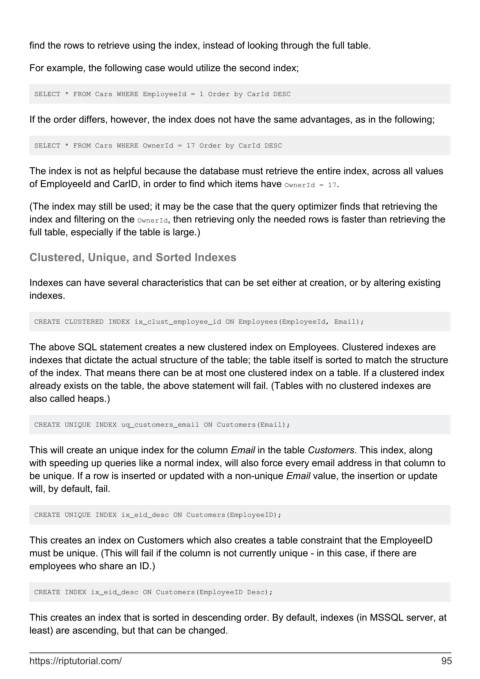 of the index. That means there can be at most one clustered index on a table. If a clustered index