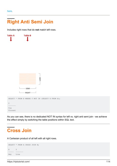 As you can see, there is no dedicated NOT IN syntax for left vs. right anti semi join - we achieve