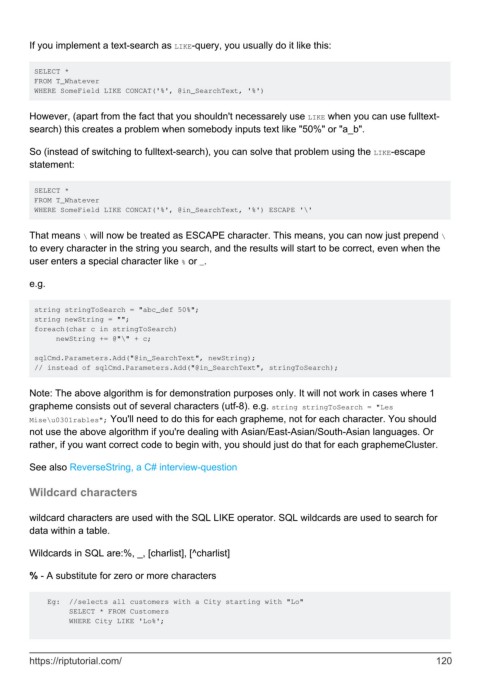 So (instead of switching to fulltext-search), you can solve that problem using the LIKE-escape
