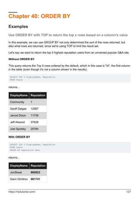 Chapter 40: ORDER BY