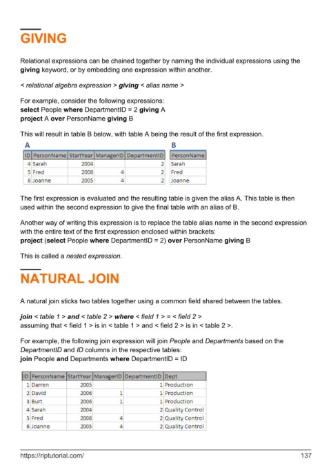 The first expression is evaluated and the resulting table is given the alias A. This table is then