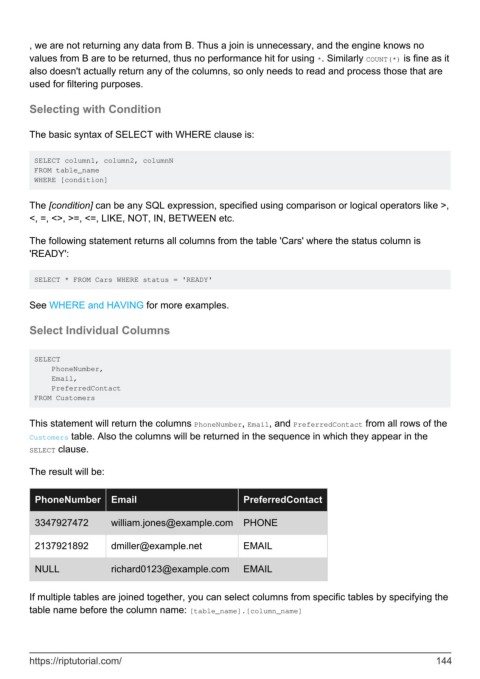 This statement will return the columns PhoneNumber, Email, and PreferredContact from all rows of the