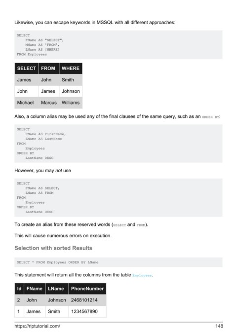 Likewise, you can escape keywords in MSSQL with all different approaches:
