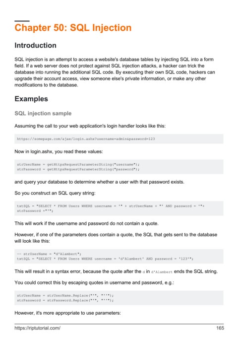 However, if one of the parameters does contain a quote, the SQL that gets sent to the database