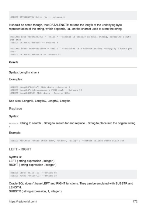 SELECT Length('righteousness') FROM dual; --Returns 13