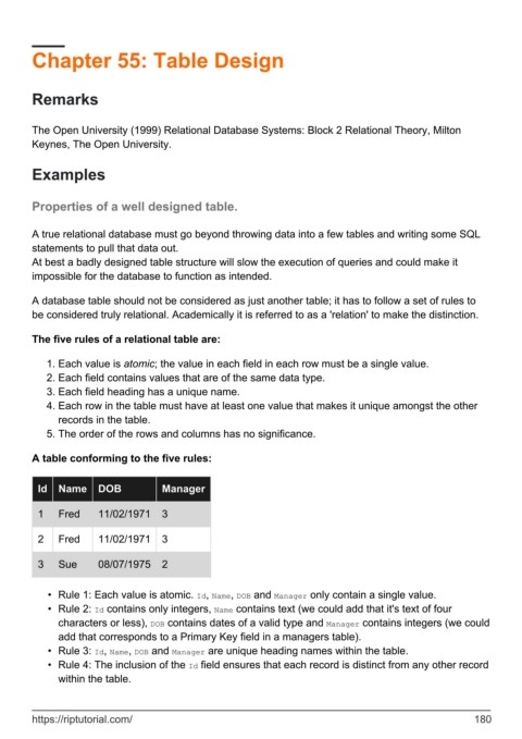 • Rule 1: Each value is atomic. Id, Name, DOB and Manager only contain a single value.