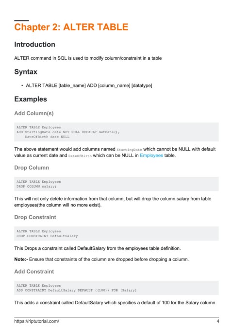 Chapter 2: ALTER TABLE
