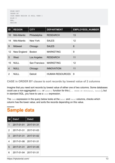 The CASE expression in the query below looks at the Date1 and Date2 columns, checks which