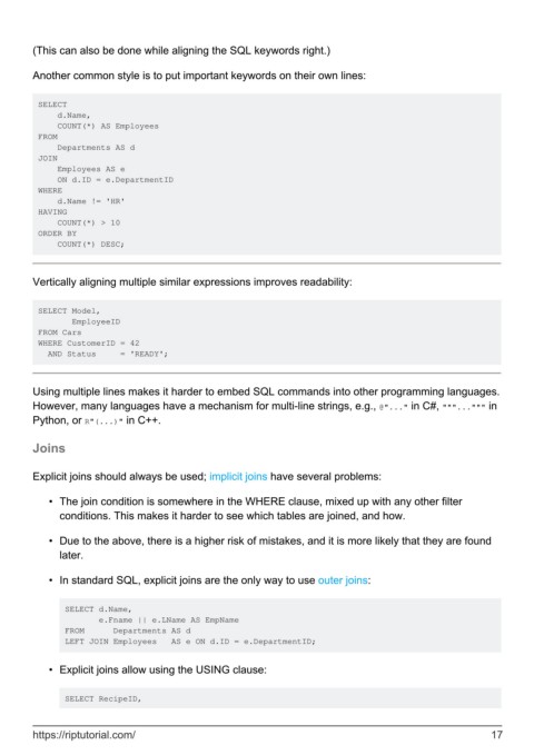 • In standard SQL, explicit joins are the only way to use outer joins: