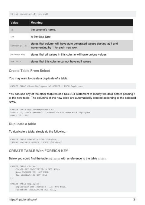 Id int identity(1,1) not null