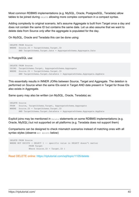 Oracle, MySQL) but not supported on all platforms (e.g. Teradata does not support them)