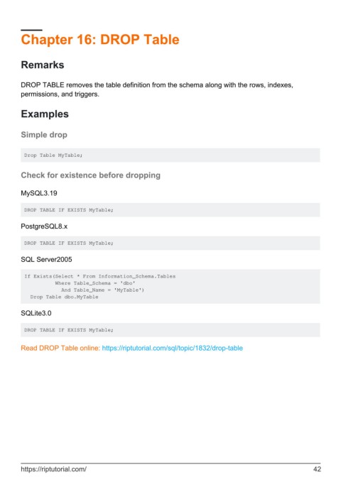 Chapter 16: DROP Table