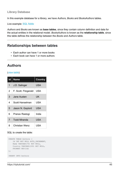 In this example database for a library, we have Authors, Books and BooksAuthors tables.