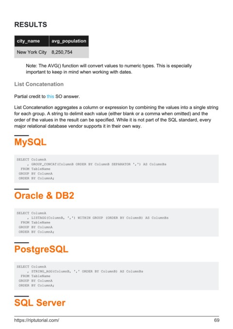 Note: The AVG() function will convert values to numeric types. This is especially