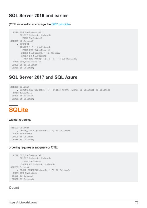 , STRING_AGG(ColumnB, ',') WITHIN GROUP (ORDER BY ColumnB) AS ColumnBs