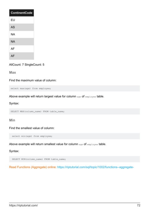 Read Functions (Aggregate) online: https://riptutorial.com/sql/topic/1002/functions--aggregate-